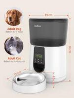 - Dual power mode: this automatic dog feeder can be operated with a 5 V DC adapter or 3 D batteries (not included) so that your pet always has food. Even if the device is disconnected from the mains supply, the previously set program remains stored and does not need to be reset.